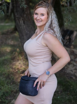 Sie besitzt zwei Täschchen und die Außenschlaufe für den Schnuller