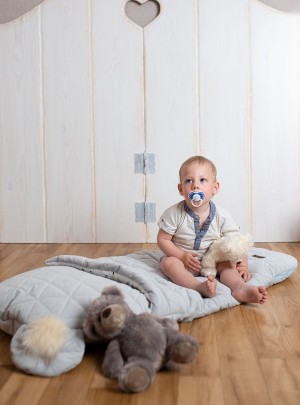 An der Stelle der Lage des Kopfs verwandten wir zusätzliche Füllung, so dass größere Bequemlichkeit während des Liegens dem Kind gesichert wird. Von unten gaben wir auch versteckte Tasche zu, in die separat verfügbares Kissen hineingesteckt werden kann, das noch mehr Bequemlichkeit sichern wird.