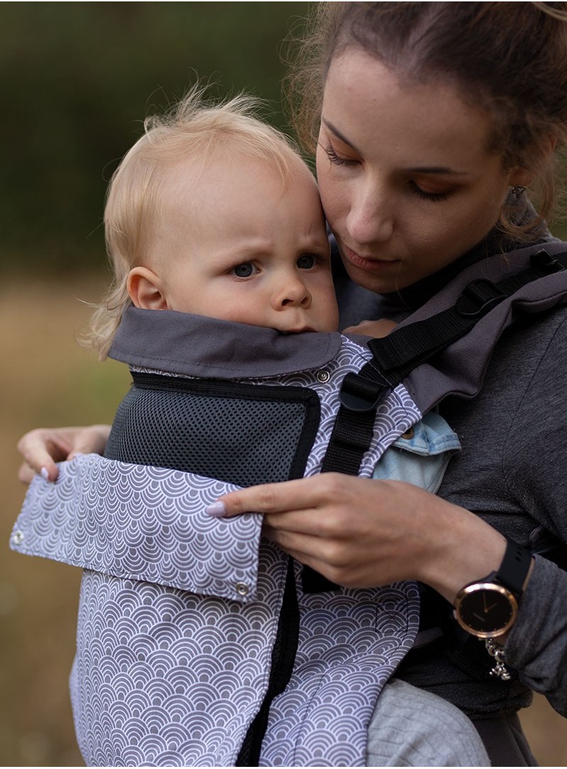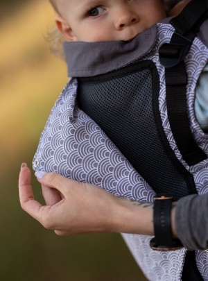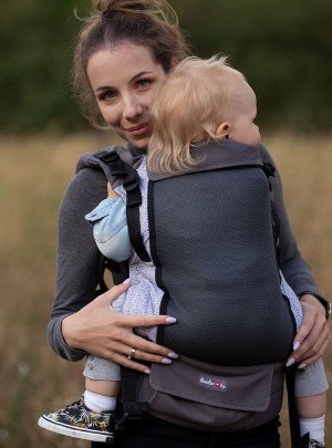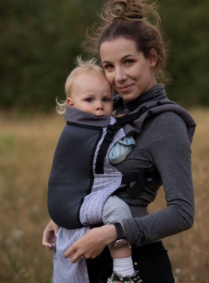 Grow Air Carrier is a breathable carrier that grows with your child. A special mesh sewed in the panel allows better ventilation during the heat. The mesh can be covered with a special fabric of the same design, which lets you to use the carrier all year round.