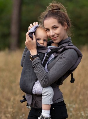 It has an additional option of buckle fastening near baby’s bottom. Thanks to it, baby’s pelvis is tucked inside and their back is c-shaped – which is essential for the littlest babies and ensures their natural and safest position. It’s the perfect carrier for the whole babywearing period.