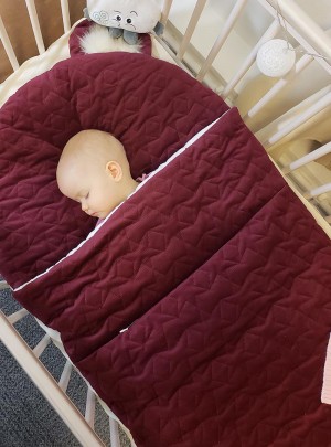 While creating the sleeping bag, our most important goal was to prepare a well-thought-out product with the most practical ways of use. The sleeping bag has a sewn-in zipper tape, which allows a baby to get inside in a very convenient way. When the zipper is fully unfastened, the sleeping bag changes into a comfortable large mat your baby can lie down on.