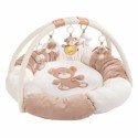 Mata edukacyjna z poduchami z kolekcji: Śpiący las To idealny pierwszy plac zabaw dla maluchów. Wraz z barwnym Domkiem, popiskującym przy potrząsaniu, uśmiechniętym Misiem pełniącym rolę grzechotki, oraz małym pluszowym Jeżem wydającym delikatny dźwięk pod paluszkami dziecka i bezpiecznym lusterkiem- Jabłuszkiem do przeglądania, zabiorą twoje dziecko na wielkie przygody i ekscytujące wyprawy do krainy snów. Trójwymiarowa mata aktywacyjna może być używana jako płaski plac zabaw lub jako przytulne gniazdko. Miękkie materiały zapewniają bezpieczeństwo i optymalny komfort dziecka od samego początku. Urocze zabawki zawieszone na łukach są łatwo dostępne. Pomagają wyszkolić zmysł dotyku dziecka i koordynację pierwszego kontaktu ręka-oko. Dodatkowy wielobarwny miś pełni rolę grzechotki. Zabawki można łatwo wyjąć, bawić się nimi osobno lub przymocować w wielu miejscach, dzięki czemu zapewniają one rozrywkę w domu i w podróży. Miękki i wygodnie wyściełany kocyk, otoczony dodatkowymi poduchami zabezpieczającymi oferuje wiele funkcji: stanowi bezpieczne gniazdko do leżenia, lub spania, a wystające elementy służą do tarmoszenia, pociągania i ściskania. Tekstury i powierzchnie zachęcają do dotykania, przytulania i zabawy. Urocze detale chcą być badane przez twoje dziecko. Łuki są łatwe do zdemontowania, dzięki czemu dziecko może używać maty do zabawy, leżenia, raczkowania lub siedzenia. Odpinane pluszowe, miękkie zabawki Bezpieczne lusterko Poduchy zabezpieczające Piszczałka, grzechotka, dzwoneczek i lusterko pomagają stymulować dotyk i słuch Zachęca do zabawy oraz ćwiczeń wzmacniających mięśnie Stymuluje i wspomaga rozwój poznawczy i umiejętności motoryczne Łatwa w montażu Rozmiar: 85 x 85 cm x 53cm Wiek: Od 0 lat Wszystkie zabawki niemieckiej marki FEHN są bezpieczne dla dzieci od 0 lat, Wykonane są z najlepszej jakości materiałów Spełniają normy EN71, CE, badane w instytutach ""Stiftung Warentest"" lub ""Ökotest” 71184