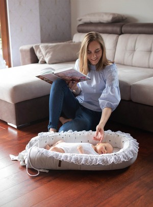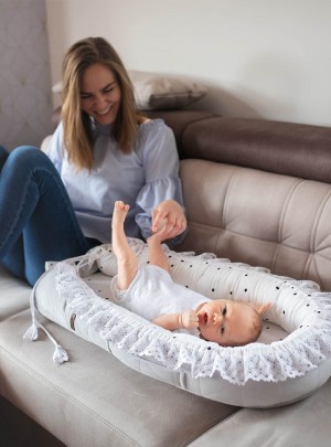 Kokon znany również jako gniazdko niemowlęce to jedna z tych rzeczy, która pozwoli na bezpieczne odłożenie dziecka bez obaw o jego sturlanie. Jest to miejsce w którym Twoje dziecko poczuje się przytulnie i bezpiecznie. Miękko wypełnione brzegi zapewniają poczucie bezpieczeństwa oraz stwarzają idealnie gniazdko do spania.