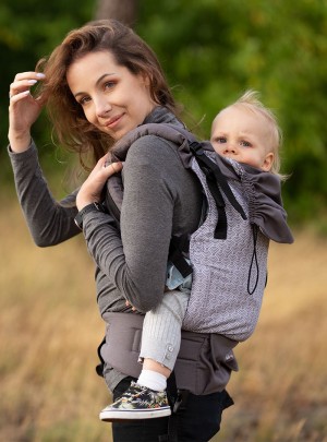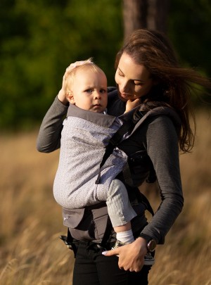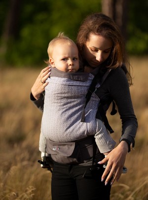 Nosidło posiada dodatkową możliwość zapięcia klamer blisko pupy dziecka, co dodatkowo podwija miednicę oraz pomaga zaokrąglić plecki u najmniejszych dzieci, nadając ich ciału bezpiecznej ergonomicznej pozycji. Jest to idealne nosidło na cały okres noszenia, które sprawdzi się w trakcie codziennych spacerów jak i podczas dłuższej wyprawy. Mocno wypełniony pas biodrowy sprawi, że ciężar dziecka będzie mniej odczuwalny, a nosidło będzie idealne u osób z problemami kręgosłupa.