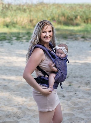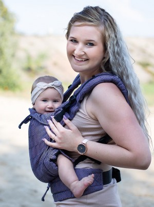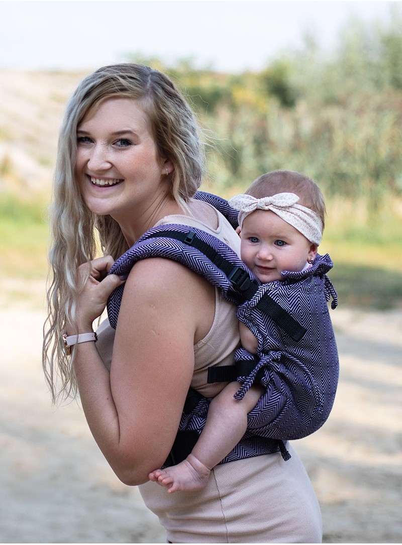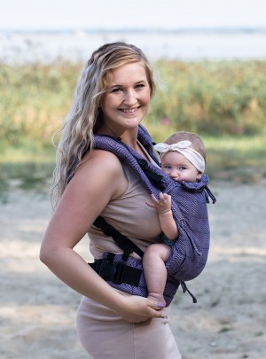 Nosidło posiada dodatkową możliwość zapięcia klamer blisko pupy dziecka, co dodatkowo podwija miednicę oraz pomaga zaokrąglić plecki u najmniejszych dzieci, nadając ich ciału bezpiecznej ergonomicznej pozycji. Jest to idealne nosidło na cały okres noszenia, które sprawdzi się w trakcie codziennych spacerów jak i podczas dłuższej wyprawy. Miękki pas biodrowy idealnie ułoży się do sylwetki osoby noszącej.